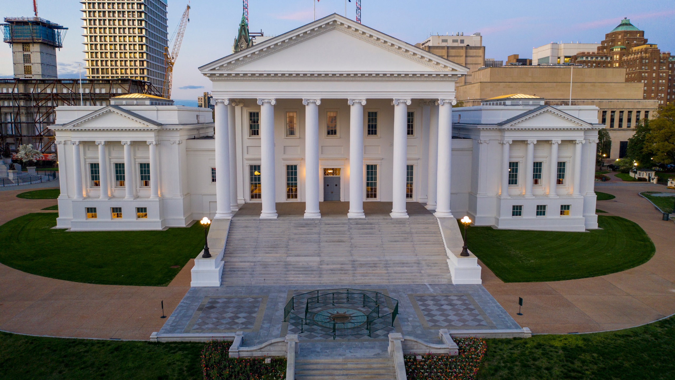 The Virginia State Capitol on Wednesday April 1, 2020, in Richmond, Va. (AP Photo/Steve Helber)