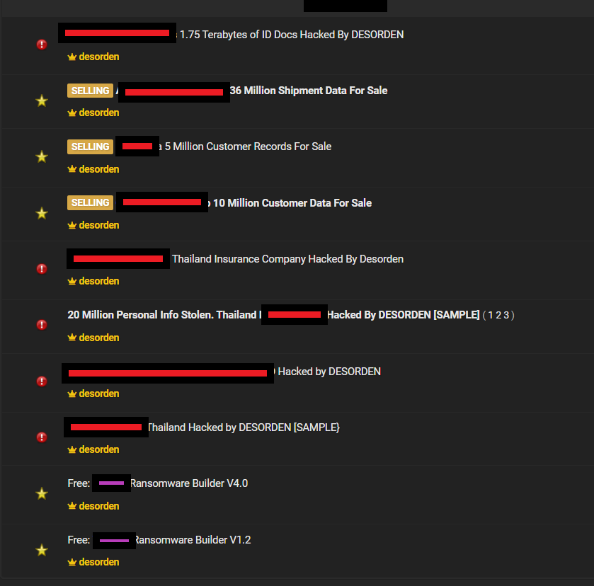 DESORDEN isn’t the only source of leaks or breaches affecting Thai entities, of course, with ALTDOS having previously been a significant threat actor in the region. DataBreaches also found other listings by other vendors or threat actors over the past few months on a popular forum where people can sell or acquire data: